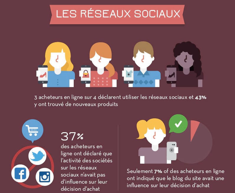 • 3 acheteurs en ligne sur 4 déclarent utiliser les réseaux sociaux et  43% y on trouvé de nouveaux produits