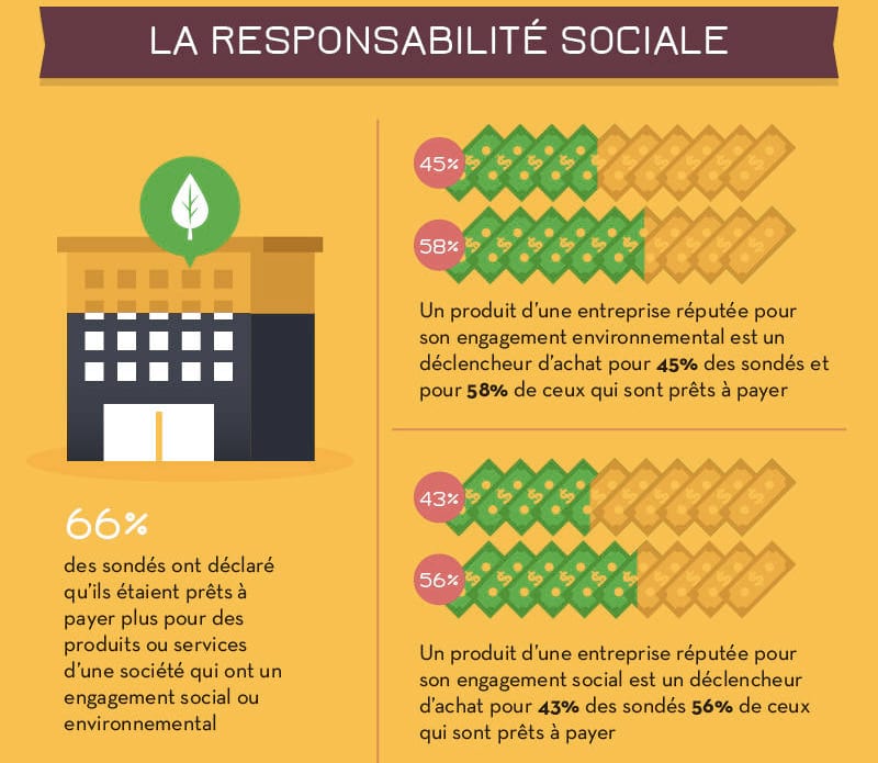 • 66% des sondés ont déclaré qu’ils étaient prêts à payer plus pour des produits ou services d’une services d’une société qui ont un engagement social ou environnemental