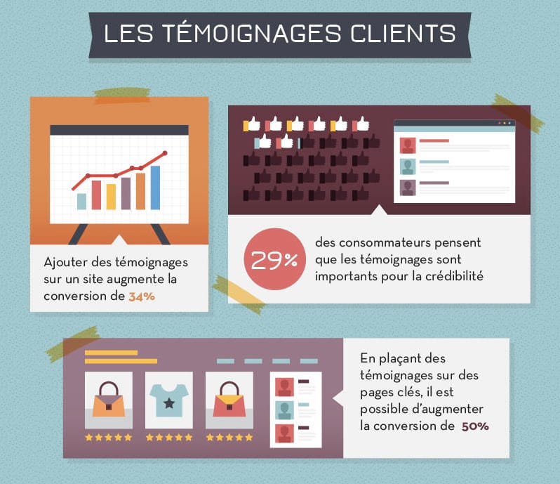 • en plaçant des témoignages sur des pages clés, il est possible d’augmenter la conversion de 50%