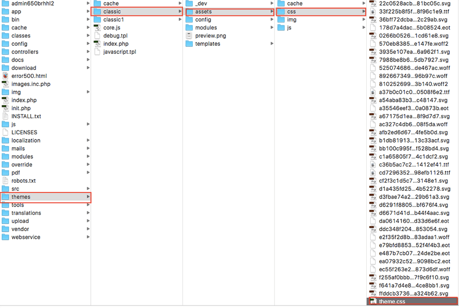 Etape 3: Ouvrir le fichier theme.css qui se situe dans ../themes/nomdevotretheme/assets/css/theme.css