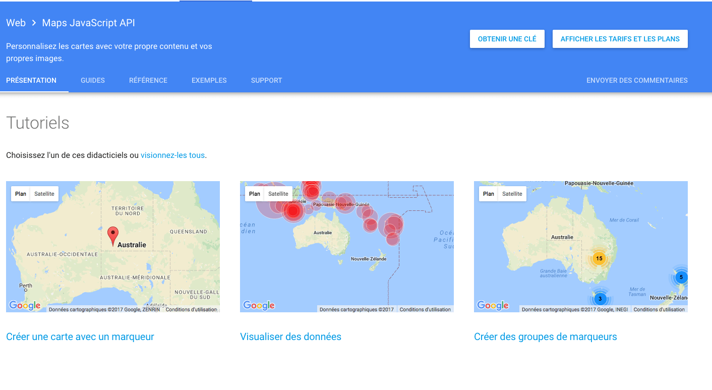 Pour générer une clé API de la part de google, allez sur le site suivant : https://developers.google.com/maps/documentation/javascript/?hl=fr et cliquez sur obtenir une clé