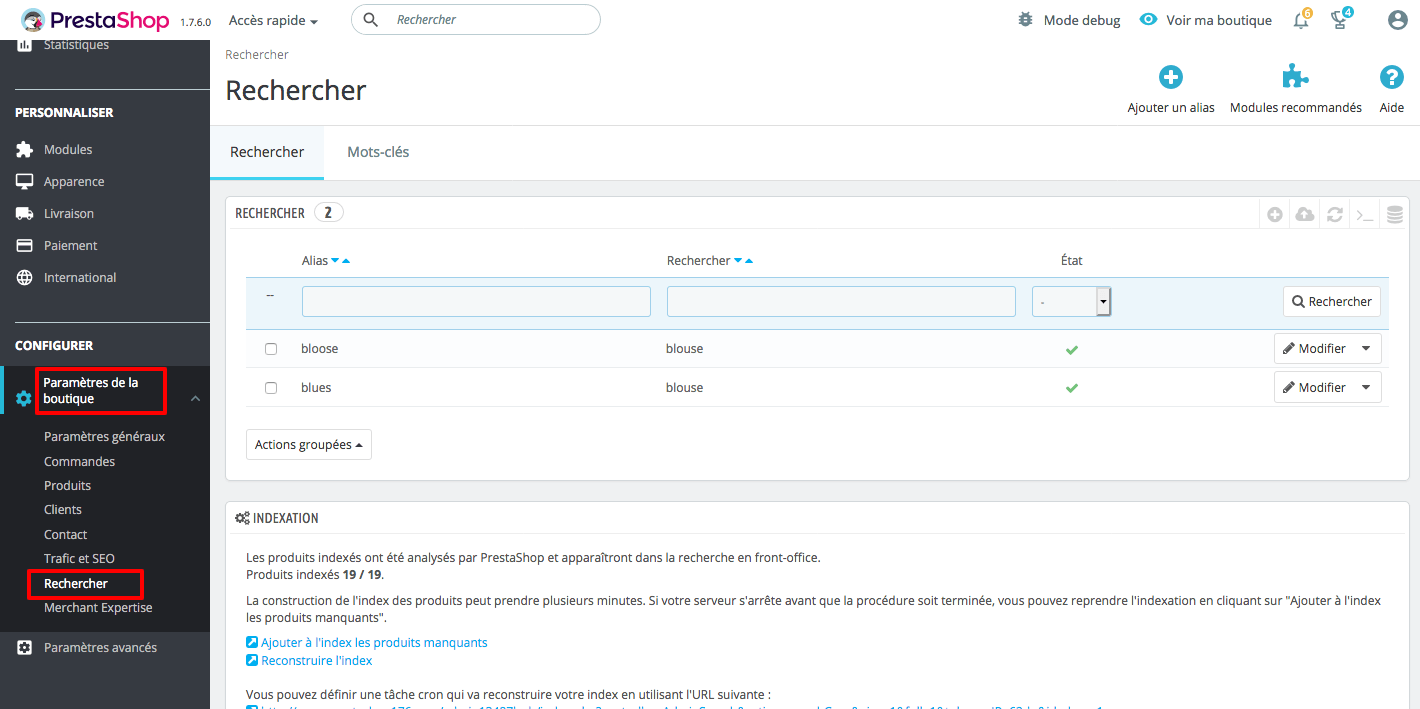 Configurer le moteur de recherche – Prestashop 1.7