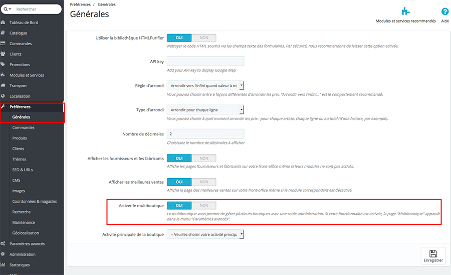 - Allez dans Préférences > Générales depuis votre back-office PrestaShop.