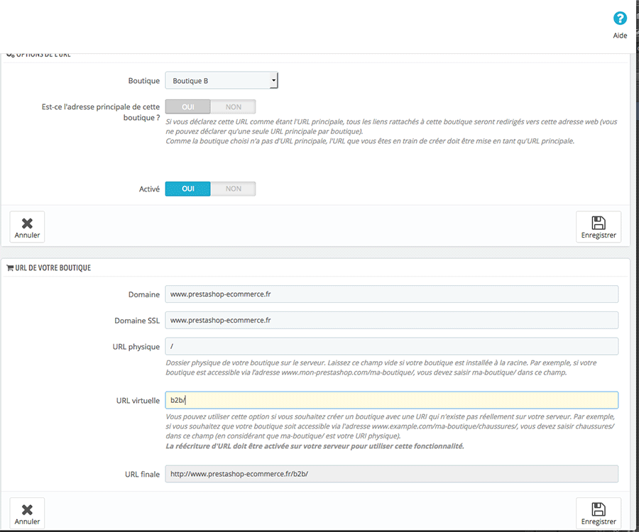 URL finale: http://www.b2b.prestashop-ecommerce.fr/