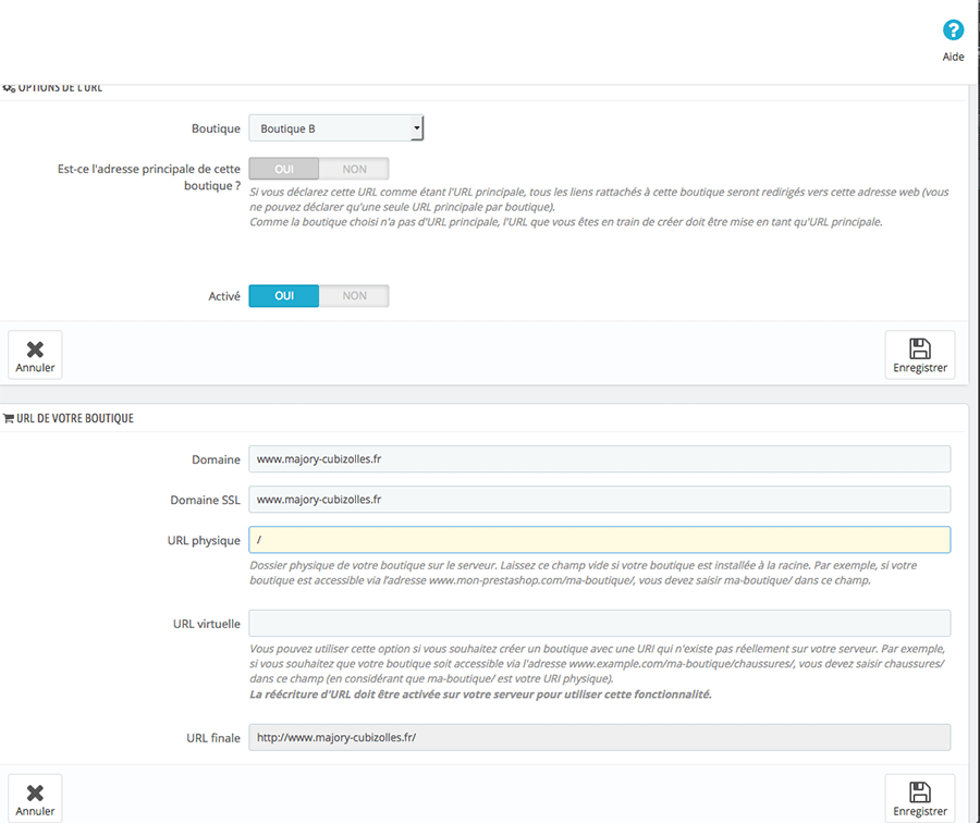 ETAPE 3) Paramétrer l’url de votre nouvelle boutique