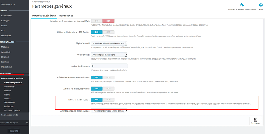 - Activez l’option multi-boutique