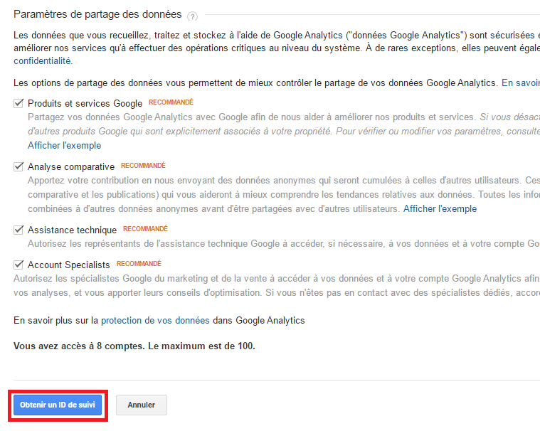 - Lisez attentivement les paramètres de partage de données (je vous suggère de tous cocher)
