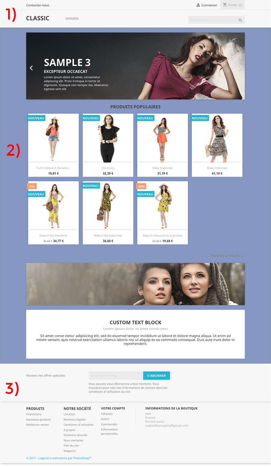 Enregistrer votre fichier, si vous actualiser votre site, vous visualiserez les modifications. Si ce n’est pas le cas, c’est peut-être un souci de cache. Pour nettoyer votre cache, vous pouvez lire l’article suivant : Vider le cache dans Prestashop 1.6 et 1.7