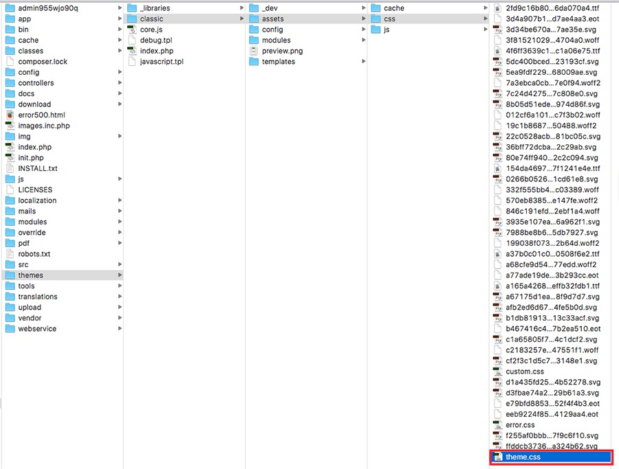 Ouvrir le fichier themes.css dans /themes/classic/assets/css/theme.css