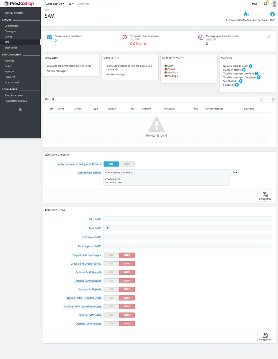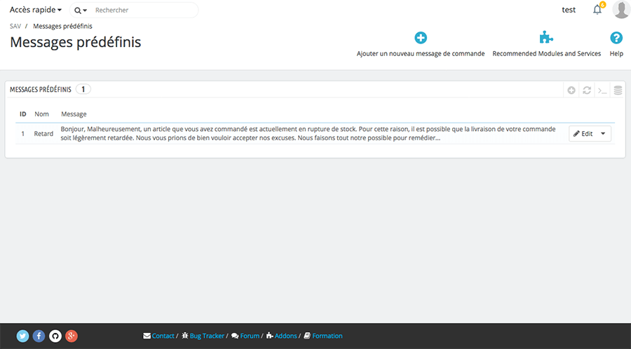 Cette page permet d’enregistrer des messages par défaut. Très utile si vous recevez des questions identiques par exemple.