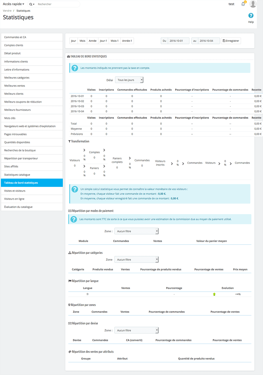 Permet d’analyser votre boutique : le nombre de visiteurs, votre chiffre d’affaires, les produits les plus commandés….