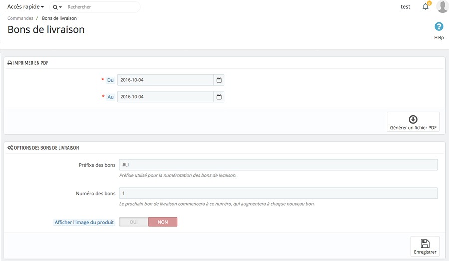 Un bon de livraison est une notification de livraison. Cette  page  permet de générer les bons de livraison au format PDF.