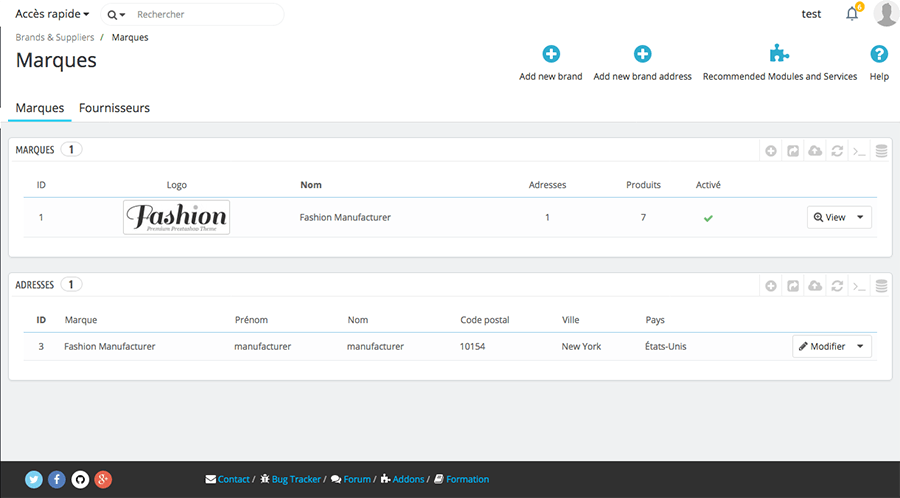 Si vous avez différent(e)s marques/fournisseurs, cette page permet de les gérer plus facilement. Ils/elles sont regroupé(e)s tous/toutes sur une même page.