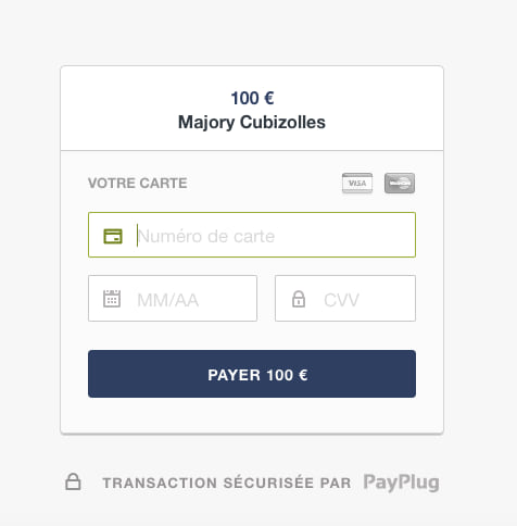 | Payplug | 2,5% + 0,25€ | 1,9% + 0,25€ | 1,2% + 0,25€ | 1,2% + 0,25€ | 1,2% + 0,25€ | 1,2% + 0,25€ |