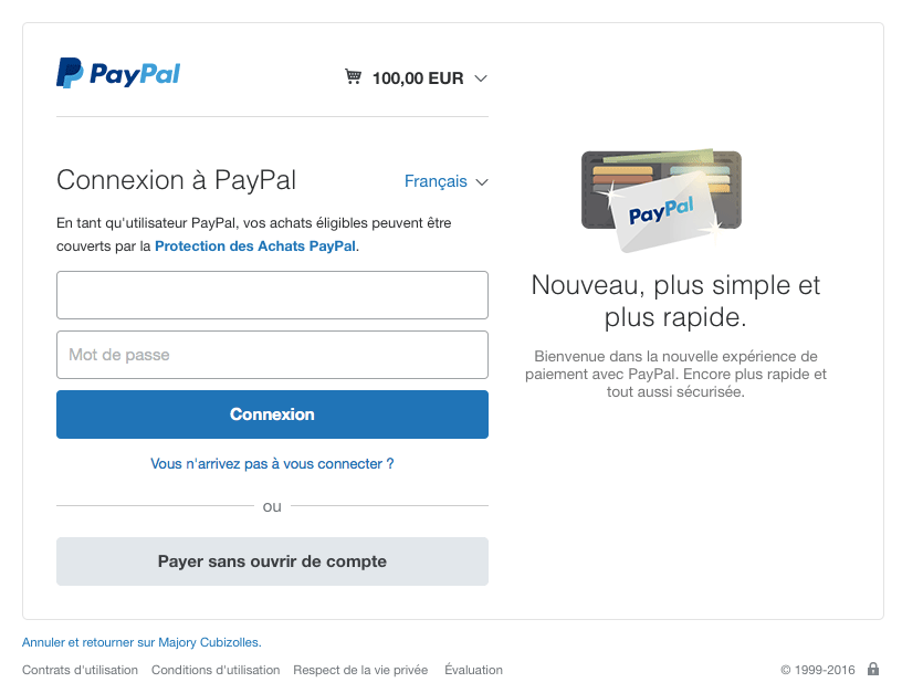 | Paypal | 3,4 % + 0,25€ | 2,0 % + 0,25€ | 1,8 % + 0,25€ | 1,8 % + 0,25€ | 1,6 % + 0,25€ | 1,4 % + 0,25€ |