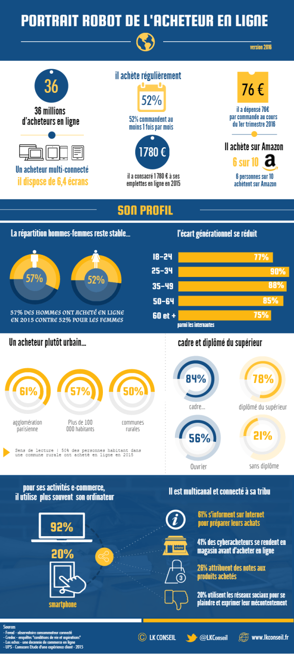 Cette infographie, réalisée par LK conseil, a créé un portrait robot d’un acheteur en ligne