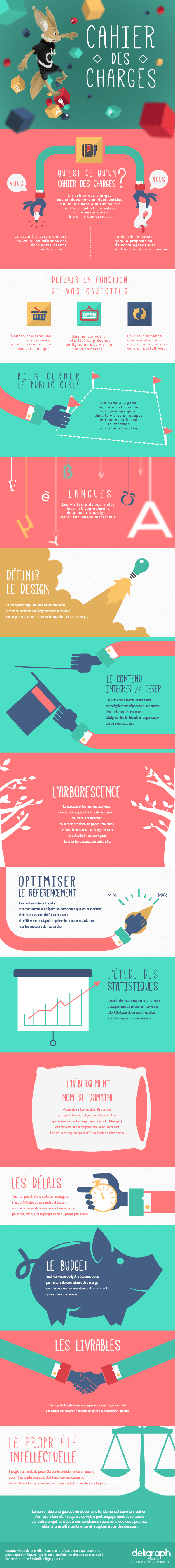 Cette infographie, réalisée par Deligrah.com, résume les différentes étapes pour réaliser un cahier des charges.