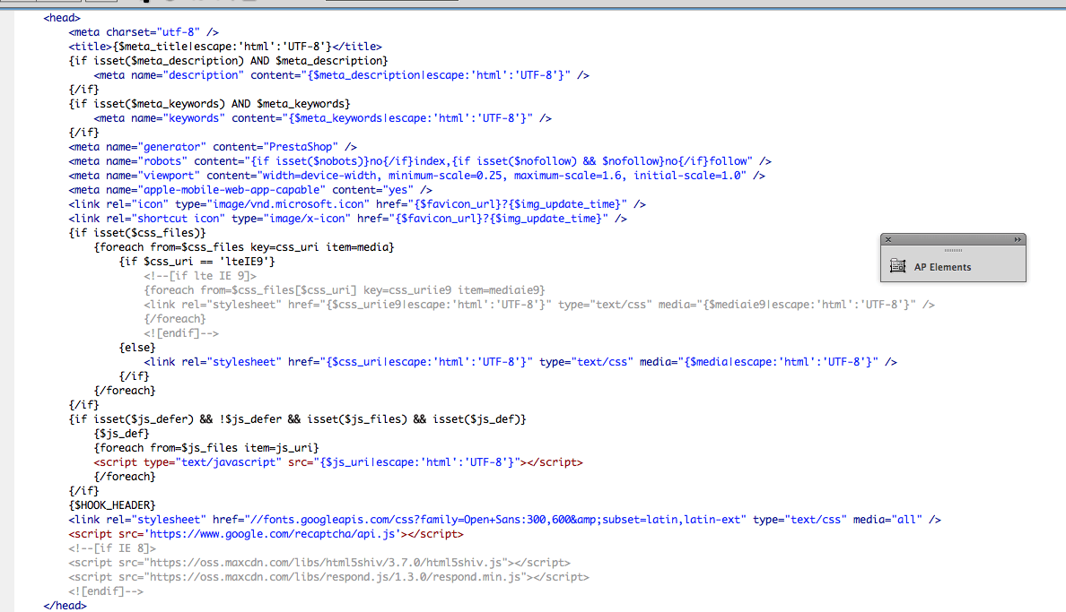 1. Ouvrez le fichier header.tpl qui se situe dans ../themes/nomdevotretheme et insérez le code suivant