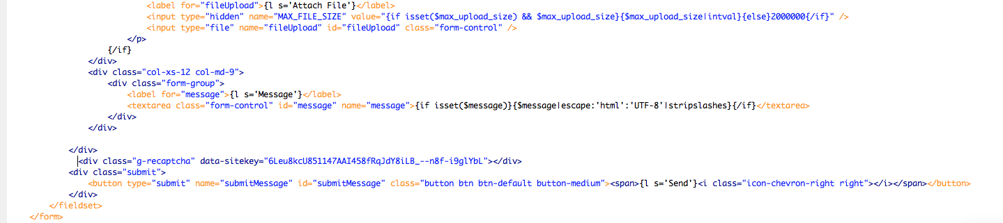 2) Ouvrez le fichier contact-form.tpl qui se situe dans ../themes/nomdetheme est insérez le code suivant