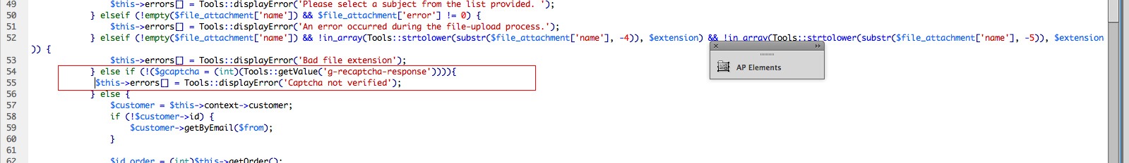 3) Ouvrez le fichier ContactController.php qui se situe dans /controllers/front/ContactController.php et inserez le code ci dessous juste après $this->errors[] = Tools::displayError(‘Bad file extension’);