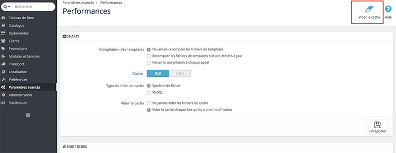 B) En haut à droite cliquez sur « Videz le Cache »